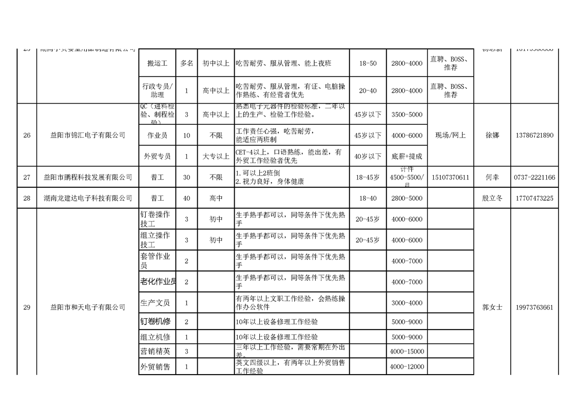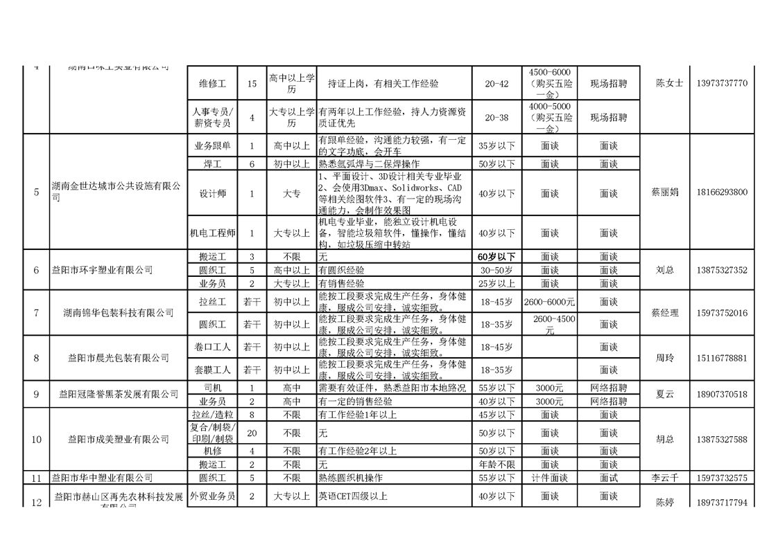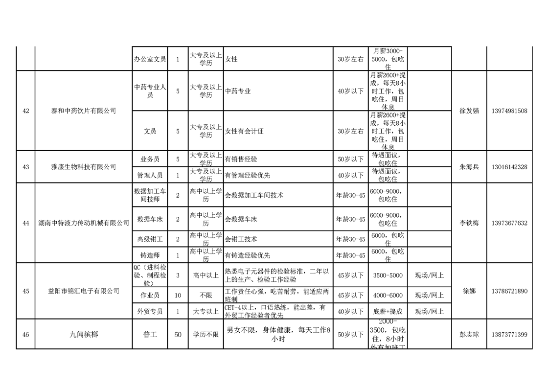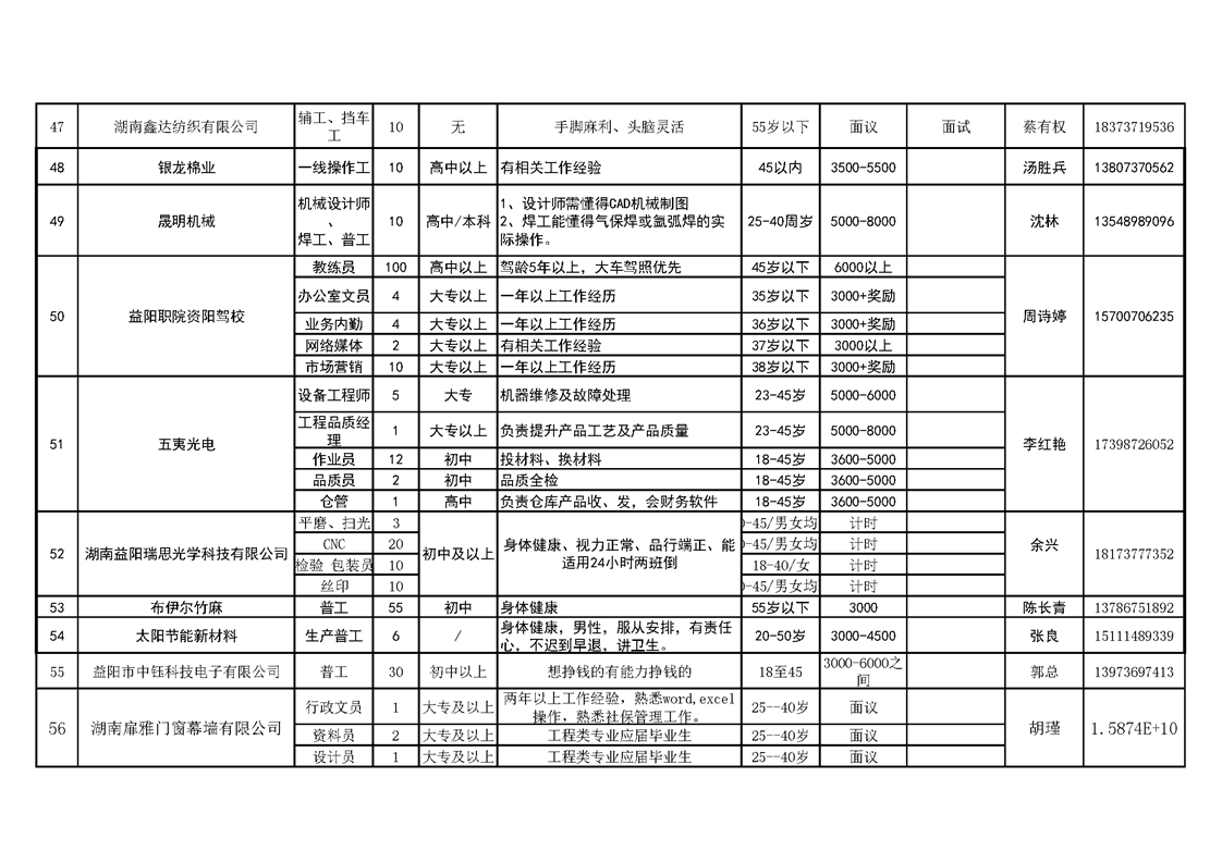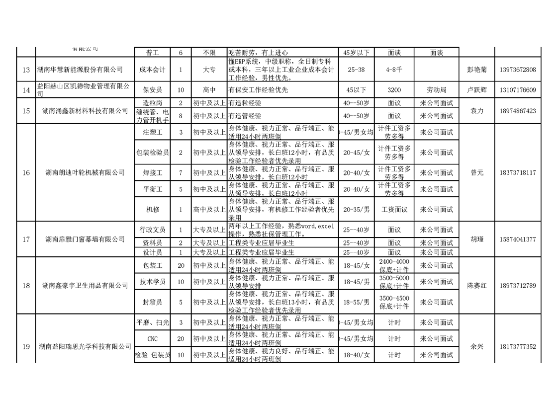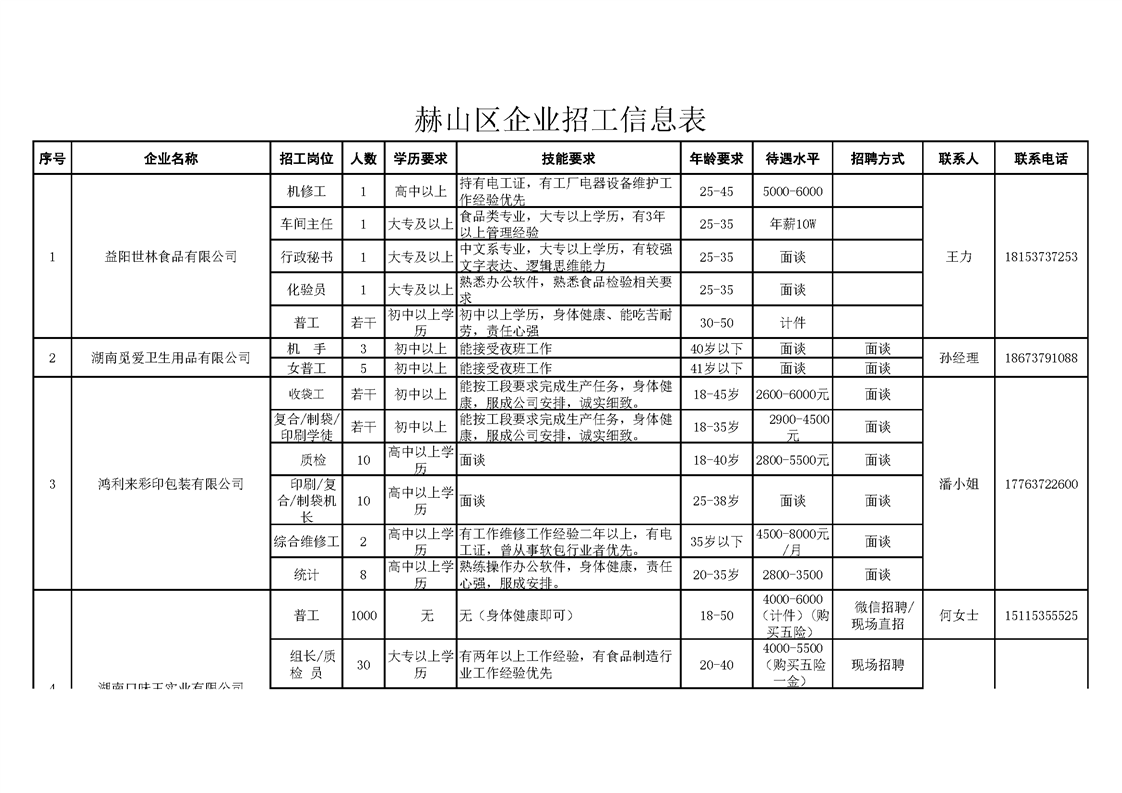 赫山区企业招工信息表.xls
