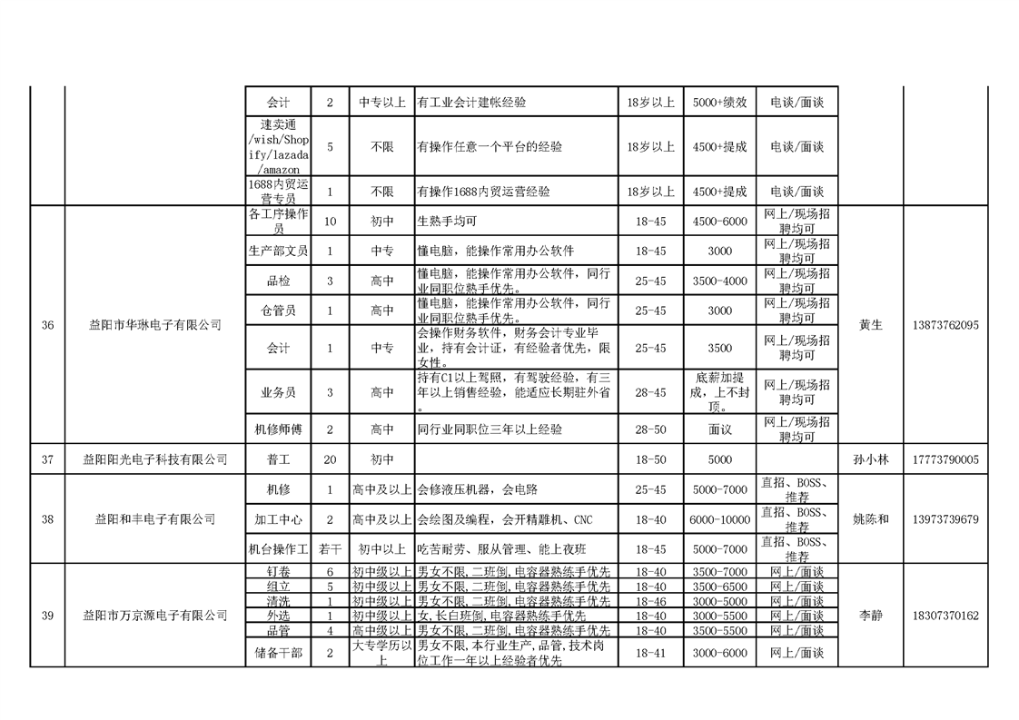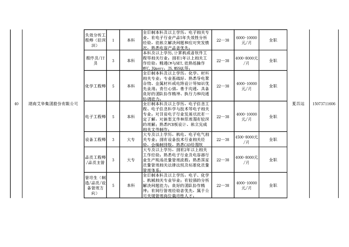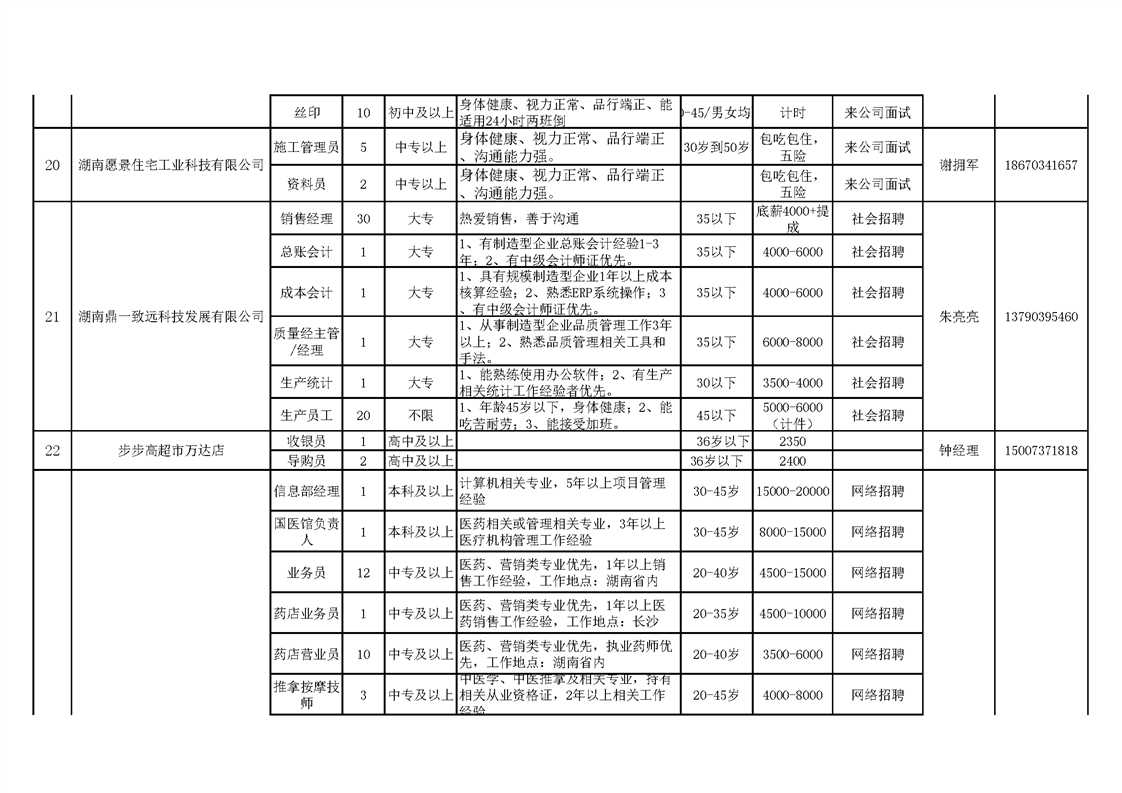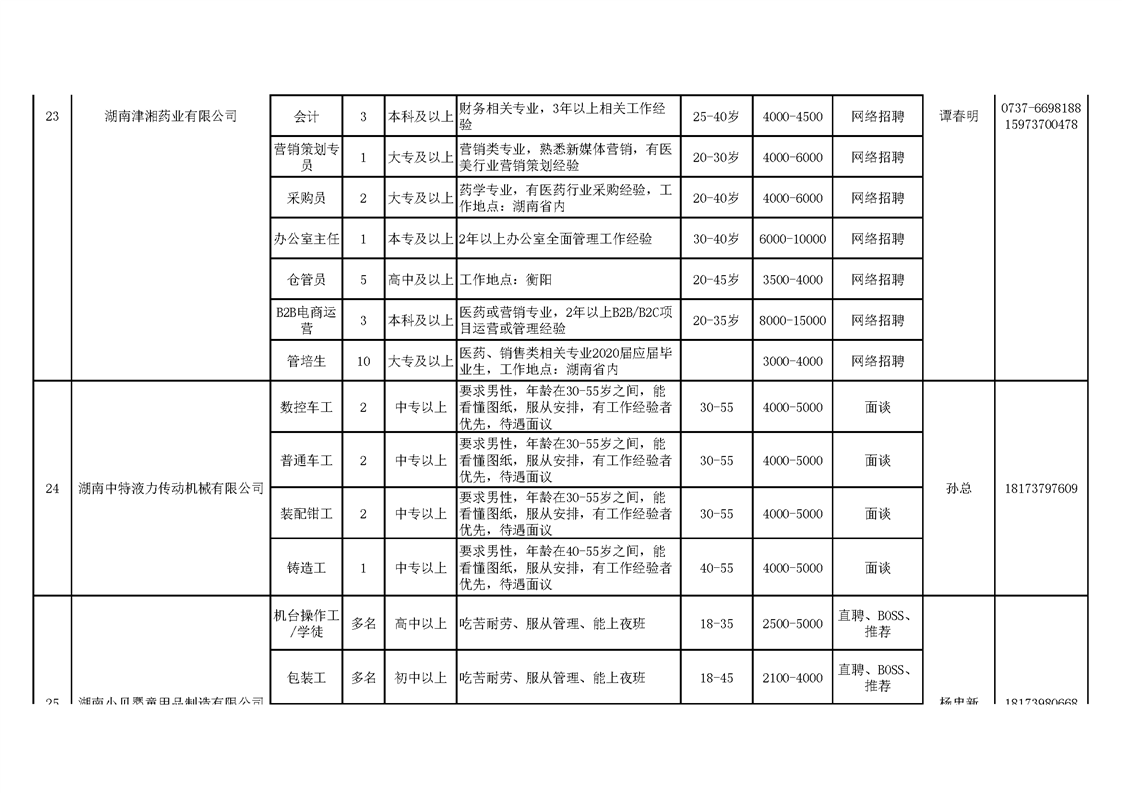 赫山区疫情防控期间重点帮扶规模企业招工信息表