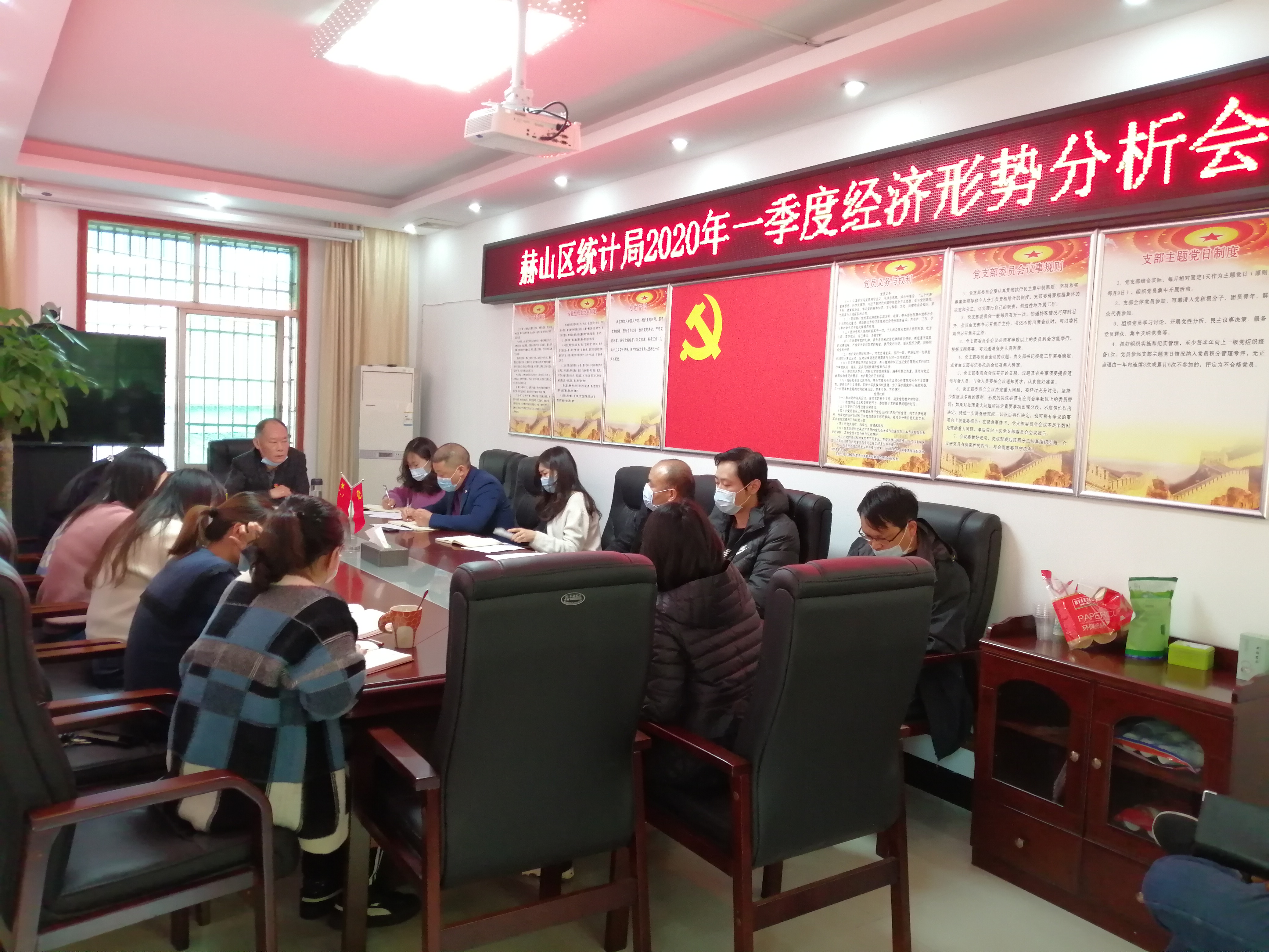 3月19日上午,赫山区统计局组织召开一季度经济形势分析会,统计局全体班子成员和各专业人员参加会议。