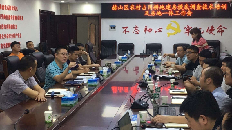 会议首先传达学习了自然资源部、湖南省政府及省、市自然资源管理部门关于农村乱占耕地建房工作精神,对各技术单位摸底调查工作任务做了安排部署,随后开展了农村乱占耕地建房摸底调查技术培训。会议强调:一要严把思想认识关,把农村乱占耕地建房摸底调查工作做为当前的一项重要政治任务抓紧抓实抓好,不讲价钱,不讲怨言,不讲代价,坚决完成任务;二要严把工作质量关,严格按照省自然资源厅下发的图斑数据和技术要求进行摸底调查,坚持不漏一个图斑;三要严把时间节点关,把握汇交数据时间节点,坚决在9月20日之前汇交问题图斑数据及占耕地建房图斑矢量数据和属性表格。