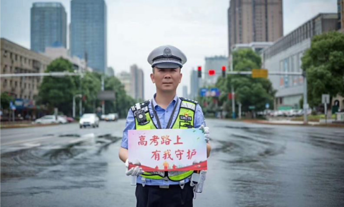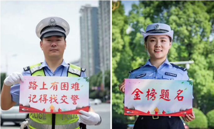 全国劳模及优秀交警,益阳交警直属一大队教导员蒋志辉、大队警花综合指导中队肖一方、海棠中队指导员丁志高代表高考护驾在城区所有考点执勤的100余名高考服务交警团队形象共同代言,祈福考生平安出征,喜登金榜。 “今年赫山区共设3个考点,167个考场,考生4772名,分布在箴言中学、万源学校和第十三中学三个考点,感谢交通警官们为‘平安高考’的辛勤付出,你们无愧人民卫士!”益阳市第十三中学考点外派工作人员高顺宏老师说。