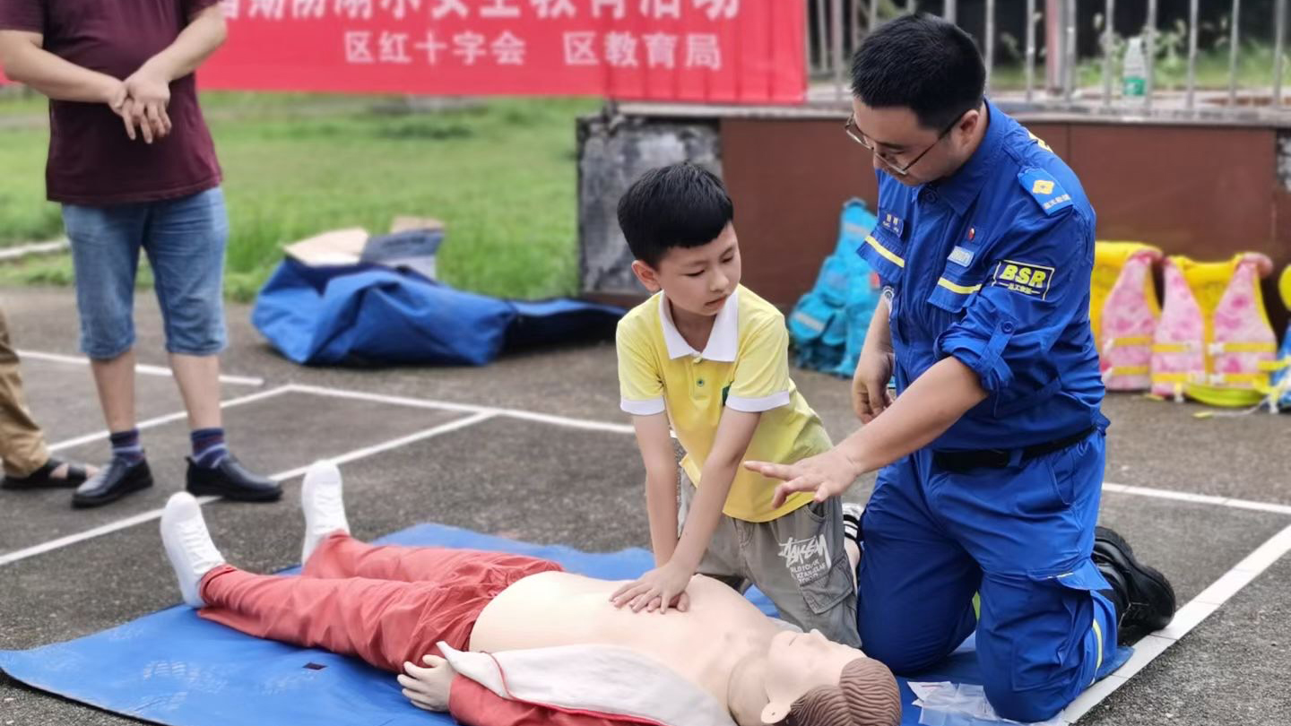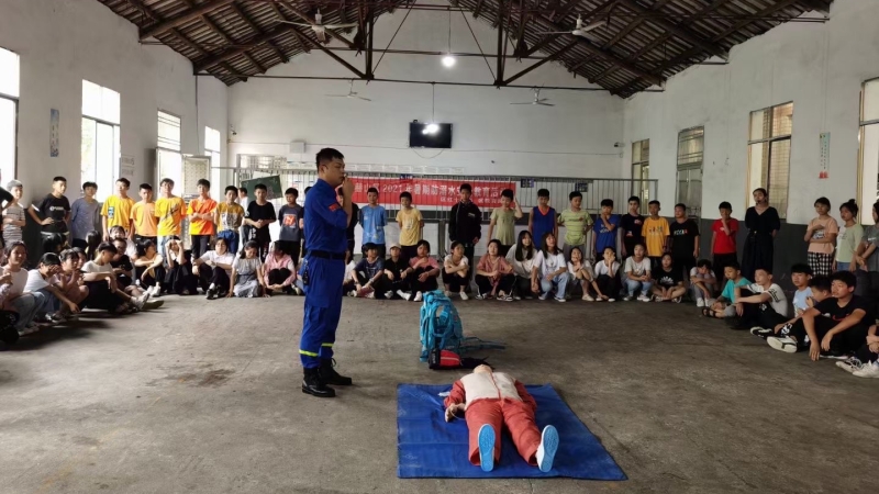 6月28日,为保障我区农村青少年儿童的暑期安全,增强自救互救能力,区红十字会、区教育局联合红十字蓝天救援队重点在衡龙桥镇、岳家桥镇等偏远乡镇学校开展暑期防溺水安全教育。