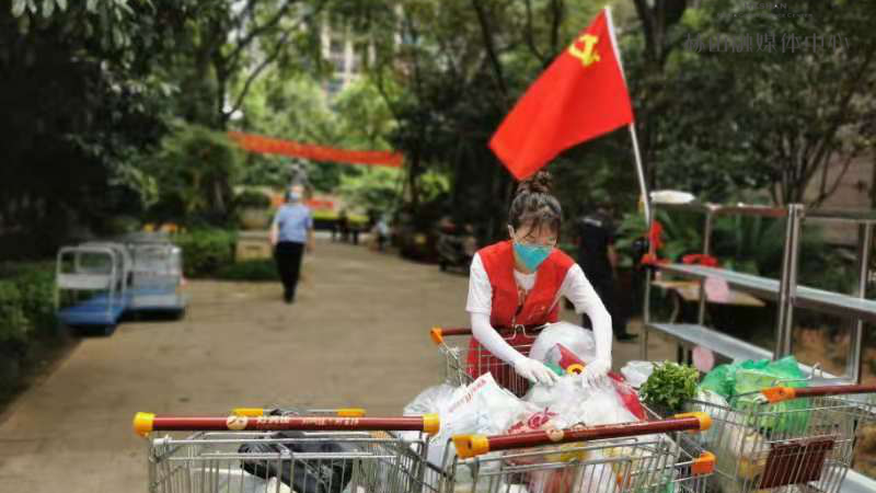 铂金汉宫小区封控以来,每天一早,熊宇仙就佩戴好党徽、做好个人防护,挨家挨户为邻居运送物资,尽管夏日炎炎,但热情不减。