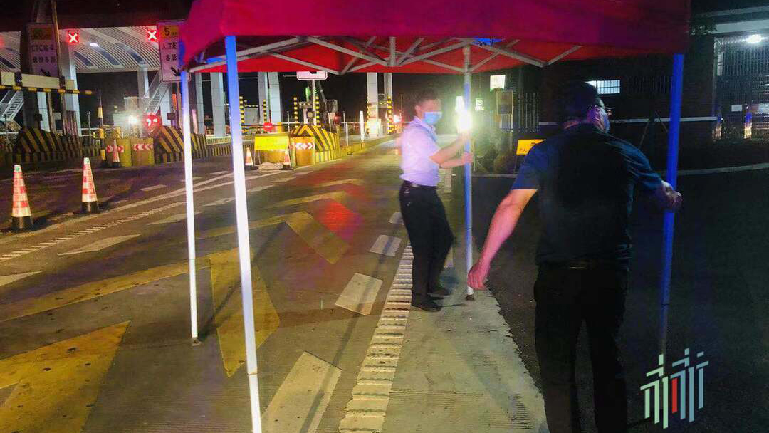 与此同时,公安、交通等部门的工作人员也先后赶到收费站现场开展布置工作。搭棚子、摆桌子,准备消毒酒精、体温枪、口罩等防疫物资……半小时后,一个全新的疫情防控咨询服务站便搭建起来了,但这仅仅是整夜战斗的一个开端。