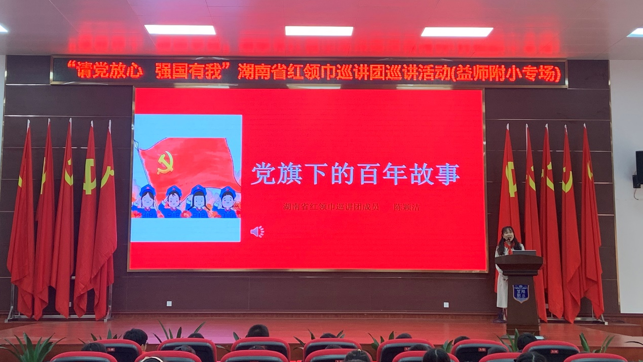 为深入学习贯彻党的十九届六中全会精神,强化对少年儿童的政治启蒙和价值观塑造,教育引导少先队员在党史学习中汲取成长的力量和前进的方向,确保红色基因代代相传,12月以来,我市唯一一位湖南省红领巾巡讲团成员陈颖洁老师在区委宣传部和团区委、区教育局、区少工委的指导下,走进赫山区曙光小学、紫竹学校、益师附小、梓山湖学校、迎宾学校和龙洲小学等六所学校开展了以“请党放心,强国有我”为主题的宣讲活动,为少先队员们带来一堂堂意义深远的党史学习教育课。
