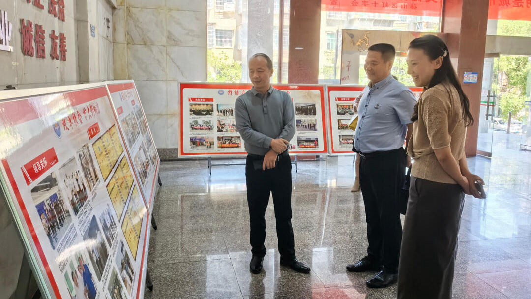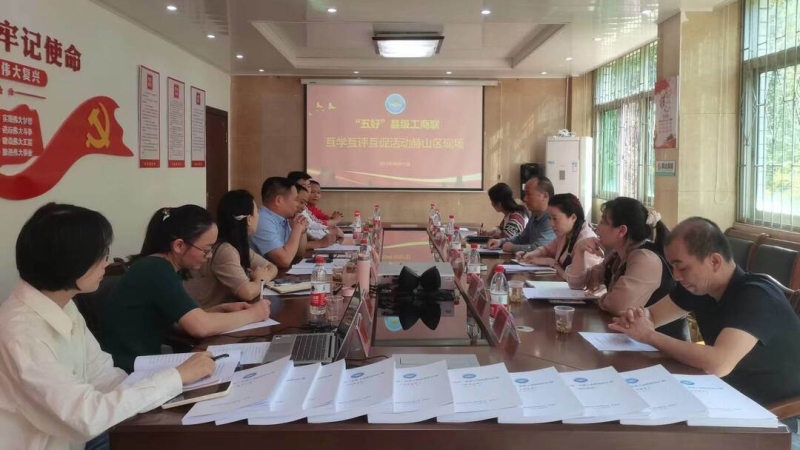 湘潭市工商联互学互评互促小组一行查看了区工商联机关办公室,观看了宣传片,进行了座谈交流。双方互相学习探讨,就“五好”县级工商联创建工作中的基本情况以及政治引领、队伍建设、商会发展、作用发挥、工作保障等情况做了深入交流。