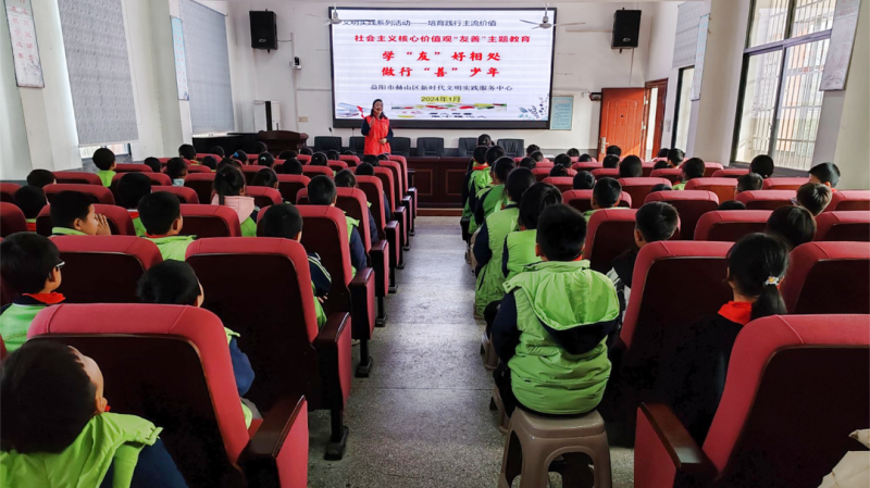 为大力倡导社会主义精神文明,进一步引导学生从小树立正确的价值观,培养学生们的公民道德意识,提高青少年文明素质。1月5日,一场别开生面的教育活动在曙光小学热烈展开,赫山区新时代文明实践服务中心联合益阳市萤火虫社会工作服务中心开展社会主义核心价值观友善篇主题活动。