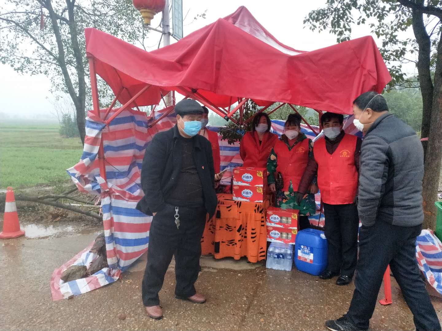 2月21日,连日来各村自发建立了志愿者队伍,不分昼夜地对进出镇、村的人员和车辆进行严格管控,并在各村、社区角落进行疫情防控宣传。2月21日兰馨志愿者协会给各村慰问点送去了物资,以此表达心中的感激。