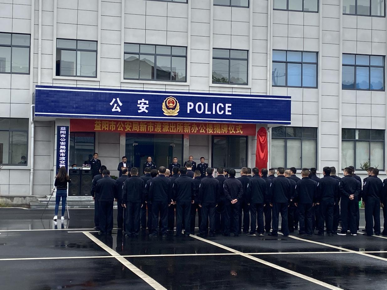 揭牌仪式由赫山分局副局长胡传玉主持,市公安局副局长邓惜春、市公安局副调研员陈日升、市公安局后勤装备部副主任陈伟、新市渡镇“四大班子”领导、赫山分局党组全体成员、局属各单位“一把手”(或教导员)及新市渡派出所全体民警、辅警等出席仪式。新市渡镇党委书记谢国长同志致辞,赫山分局党组副书记、政委龙日荣同志作重要讲话,派出所所长李操同志作表态发言。