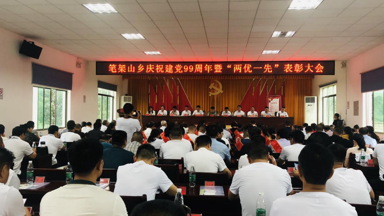 为庆祝中国共产党成立99周年,进一步激发基层党组织和党员活力,6月30日上午,笔架山乡召开庆祝建党99周年暨“两优一先”表彰大会。会上回顾党的光辉历程、重温入党誓词、表彰先进典型。全体机关干部、第一书记、村(社区)干部、其他党组织负责人、先进基层党组织、优秀共产党员、优秀党务工作者代表等180余人参加会议。乡党委副书记、乡长陈天峣主持会议。
