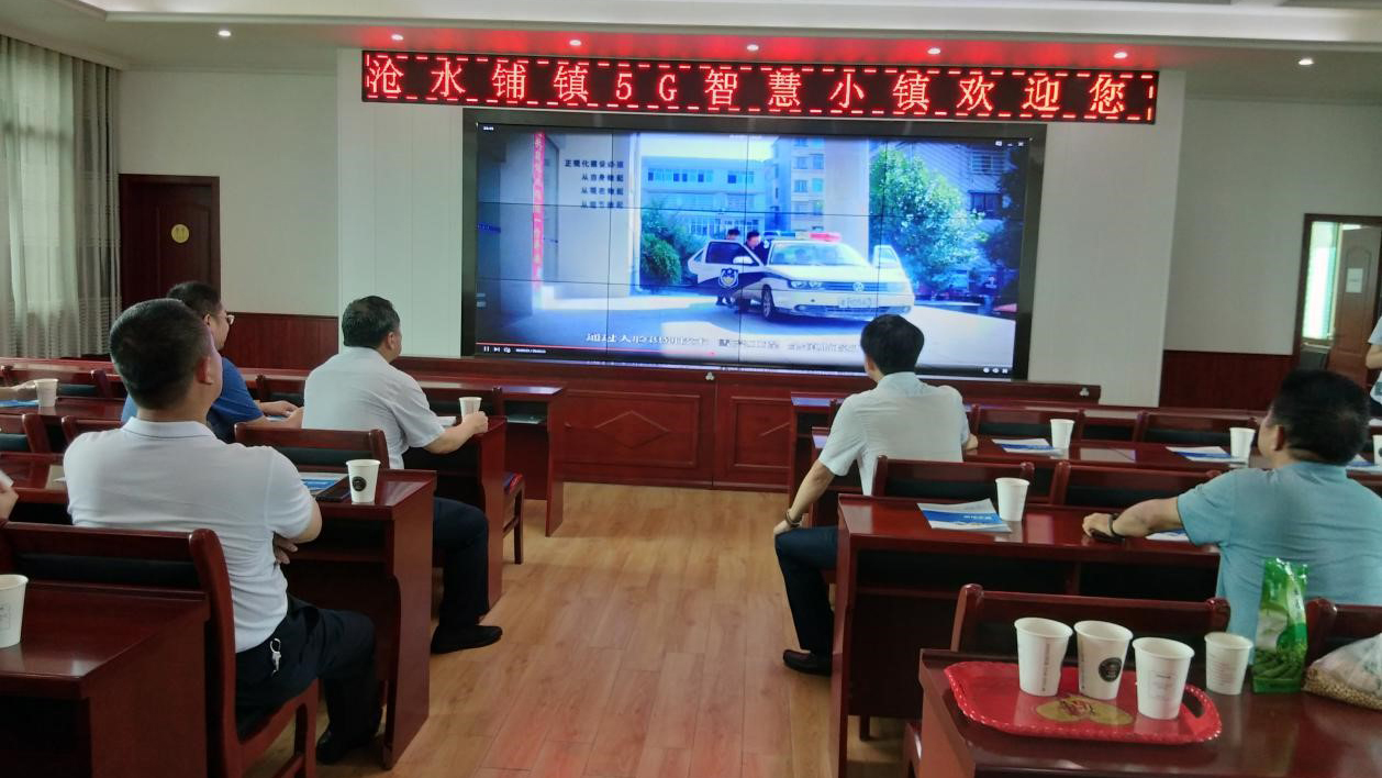 随后,考察组一行来到镇四楼5G视频调度中心,观看了5G小镇宣传片及智慧旅游、智慧教育、智慧安防等十大应用板块内容的演示。初次体验“5G+VR旅游”后,对智慧旅游板块给予了充分肯定,“VR+旅游”使广大市民在疫情期间足不出户便可品味自然山水之美,让“宅家游”成为现实,丰富了民众居家隔离的精神文化生活。考察组还提出,要把智慧医疗、智慧教育、智慧安防等板块做优做强,加大在生产生活中的应用,给沧水铺的群众带来更大的便利。
