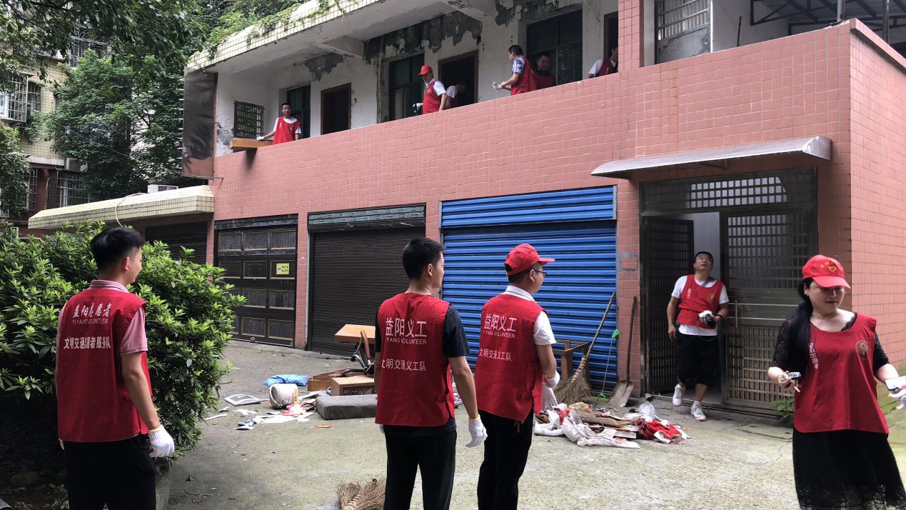 同一时间,局里的志愿者们前往金鸿佳园小区党支部打扫卫生,清理杂物,一个个忙得汗流浃背,经过两个多小时的努力,小区党群服务站焕然一新。