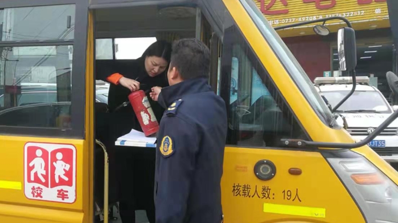 2月24日,岳家桥镇校车办联合应急办、执法队、学校、校车公司对全镇29台校车进行安全检查,为即将到来的3月1日开学日做好准备。