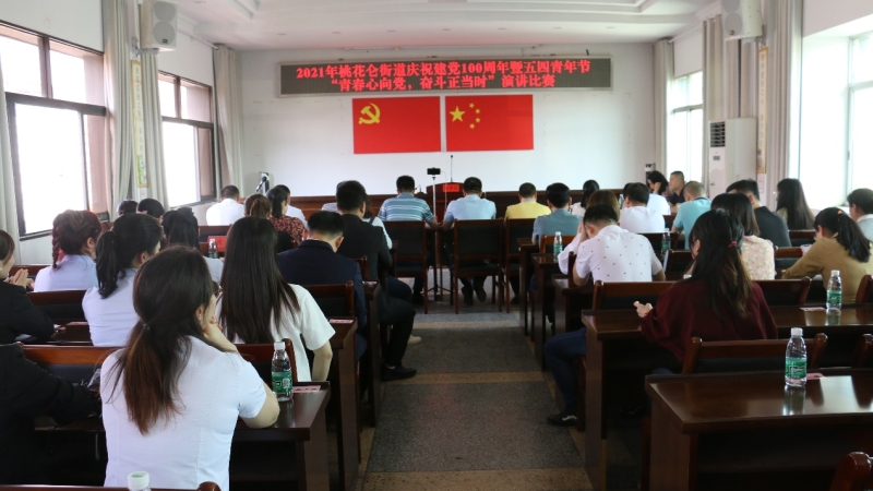为庆祝中国共产党成立100周年,深入推进党史学习教育, 5月8日,由桃花仑街道党工委主办、团工委承办的五四青年节 “青春心向党,奋斗正当时”主题演讲比赛在街道七楼会议室举行。团区委副书记喻哲丹、街道全体班子成员、各办(中心、站、队)负责人、各社区书记、各社区团支部书记及35岁以下年轻干部参加活动。