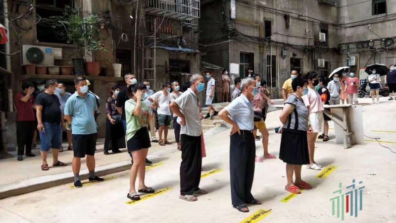 东风岭社区滨湖柴油机家属区有890户常住人口。8月3日,社区接上级通知,次日启动全员核酸检测。在社区的要求下,小区党支部第一时间在微信群召开支部小组、楼栋长会议,通过在网格群内发放通知、在楼栋间张贴告知书等方式扩大人群知晓度,提高群众进行核酸检测的意愿;对老弱病残开展登记,集中进行检测;把28栋房子分为七个小网格,并发放检测号码,让居民有序参与检测。