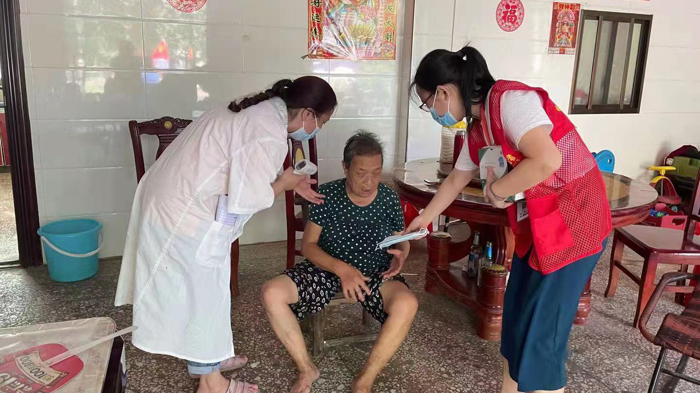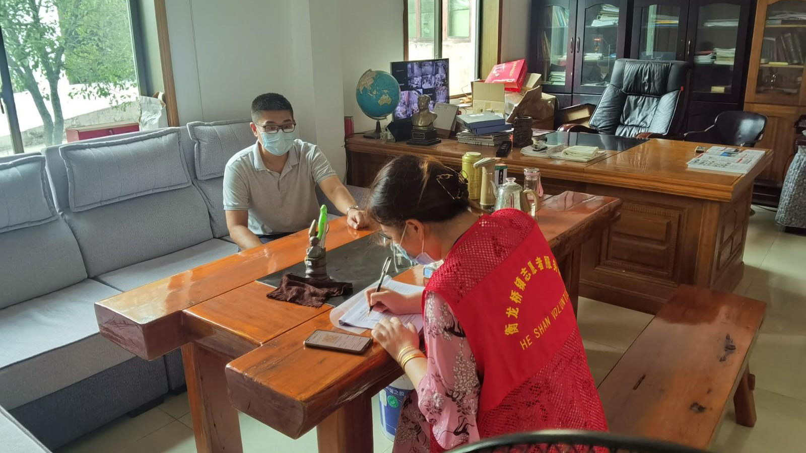“孟娭毑,您好,我们是衡龙桥镇桐子岭村新时代文明实践站的志愿者,我们是来给您进行体温测量的。”8月3日衡龙桥镇桐子岭村新时代文明实践站的志愿者们来到桐子岭村密切接触者孟娭毑家中进行体温测量志愿服务并递上了口罩。