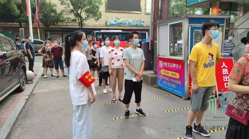 核酸采样现场,医务人员“全副武装”,熟练地进行核酸采样,居民严格按照要求佩戴口罩,保持着一米以上的安全距离,不攀谈,现场工作人员也积极维护秩序,现场秩序井然,核酸采样工作有序开展。我们还看到许多党员志愿者,有帮助维持秩序的,有帮助登记信息的,有查看健康码的,在烈日下满头大汗,他们却毫无怨言“现在正是需要我们党员的时候,理应站出来,能帮得上忙也是我们的荣幸!”