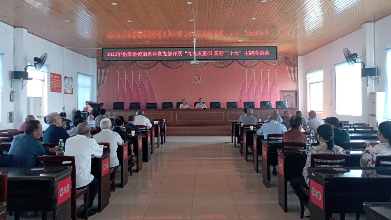 为大力弘扬尊老、敬老的中华民族优良传统,对离退休干部职工致以节日的问候。9月30日上午,益阳市赫山区岳家桥镇离退休党支部“九九庆重阳,喜迎二十大”主题座谈会在岳家桥镇政府三楼大会议室举行。