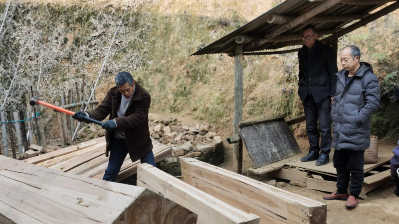 刘放仁作为组里的联户村民代表,同时也是一名老党员,在他细致耐心的宣传下,组里的群众也逐渐认同这项政策,为了带动群众响应号召,他还率先垂范,向政府申请先拆除自家棺木,随着破棺现场铁锤挥下,4副棺木破碎倒地,“厚养薄葬、文明丧葬”的风气也在沧水铺镇冉冉立起。