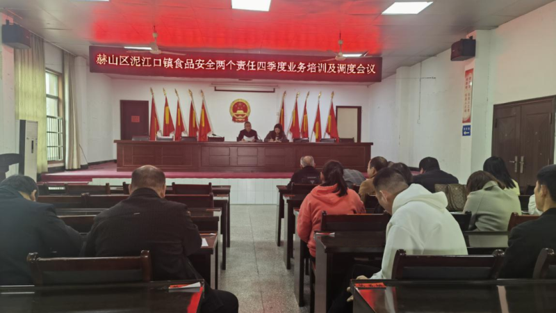 为进一步提升全镇食品安全治理能力,11月24日,泥江口镇召开食品安全“两个责任”四季度业务培训及调度会议。全镇包保干部及C级主体负责人参会。