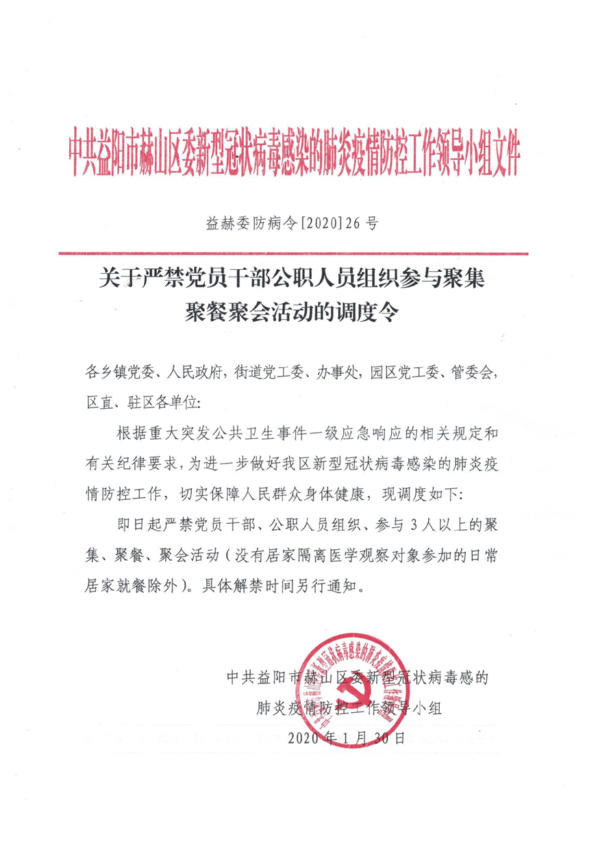 关于严禁党员干部公职人员组织参与聚集聚餐聚会活动的调度令