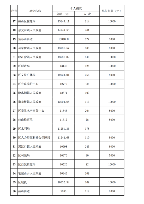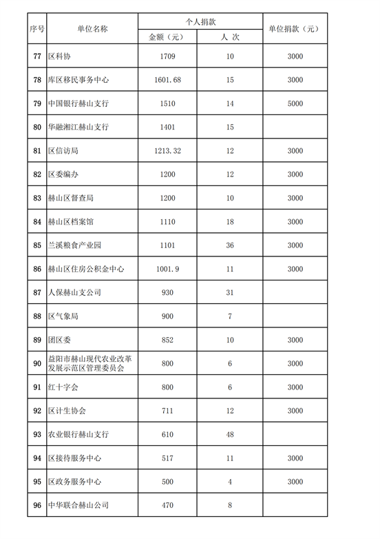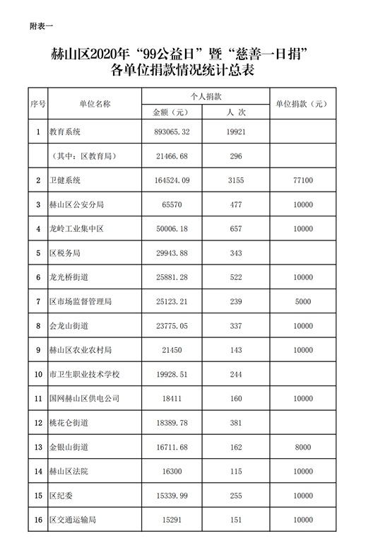 附件:1、赫山区2020年“99公益日”暨“慈善一日捐” 各单位捐款情况统计总表