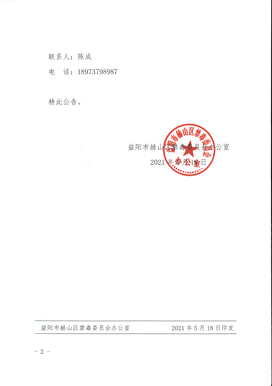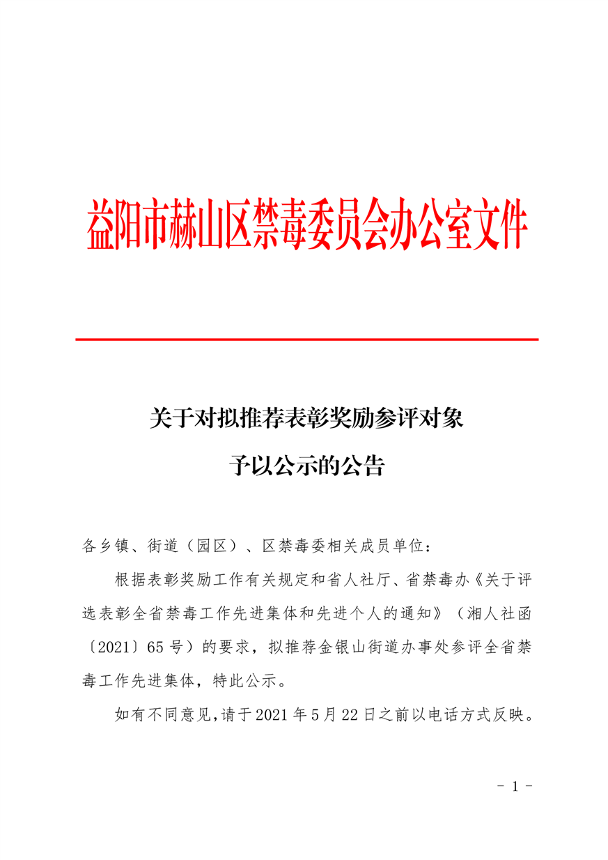 赫山区禁毒委员会办公室关于对拟推荐表彰奖励参评对象予以公示的公告