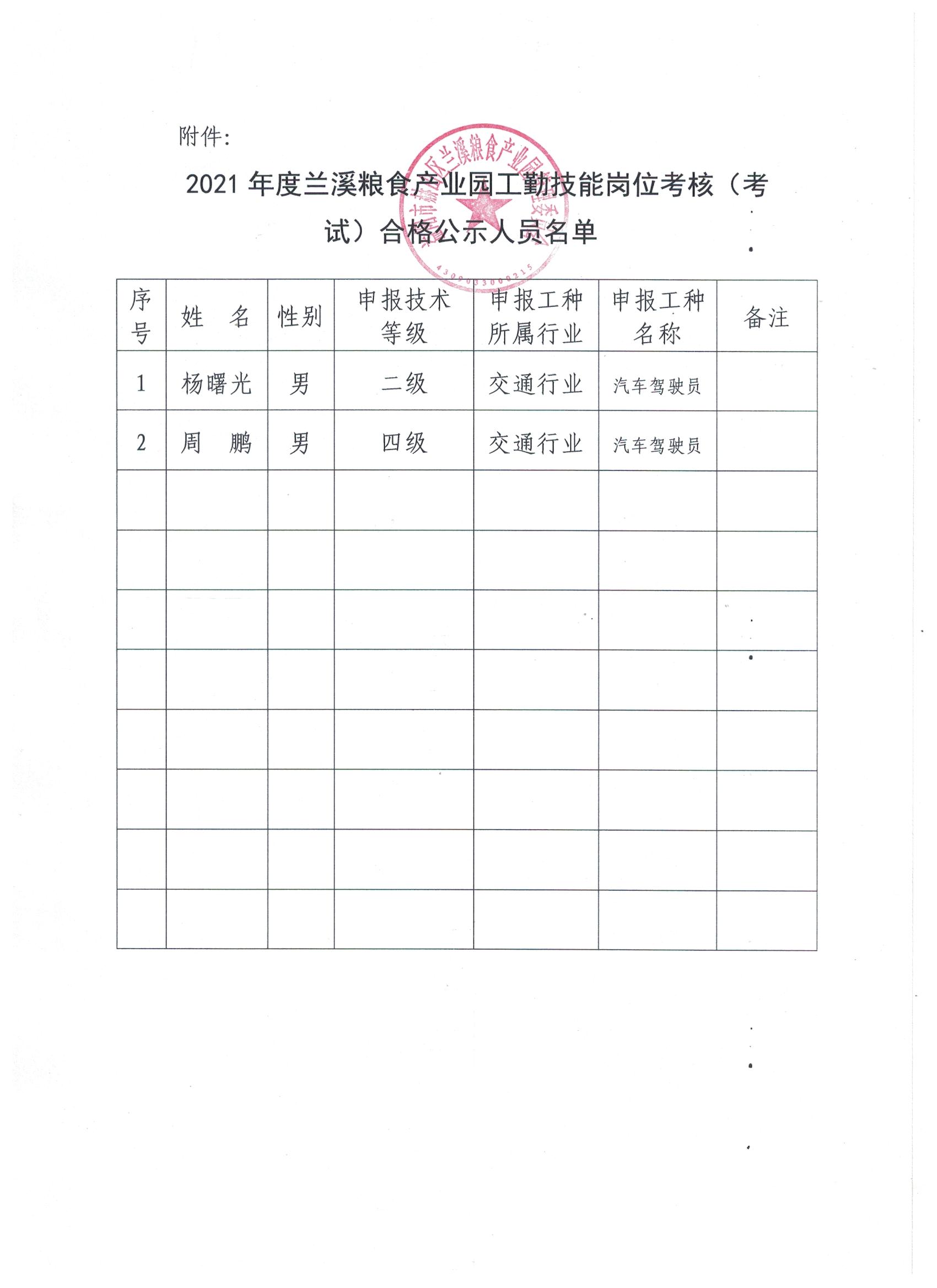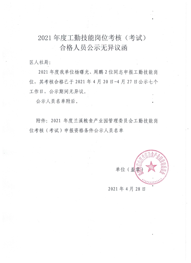 2021年度工勤技能岗位考核(考试)合格人员公示无异议函