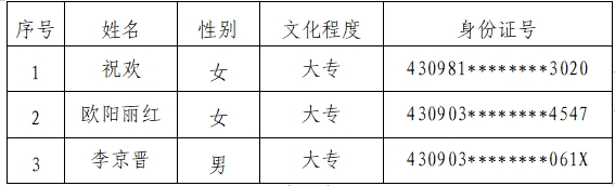 根据《益阳市赫山区畜牧水产事务中心2024年特聘动物防疫专员招聘公告》,经报名、资格审查、笔试、面试、体检等程序,确定拟聘用以下3名特聘动物防疫专员,现予公示。公示期限:2024年12月17日至2024年12月23日。