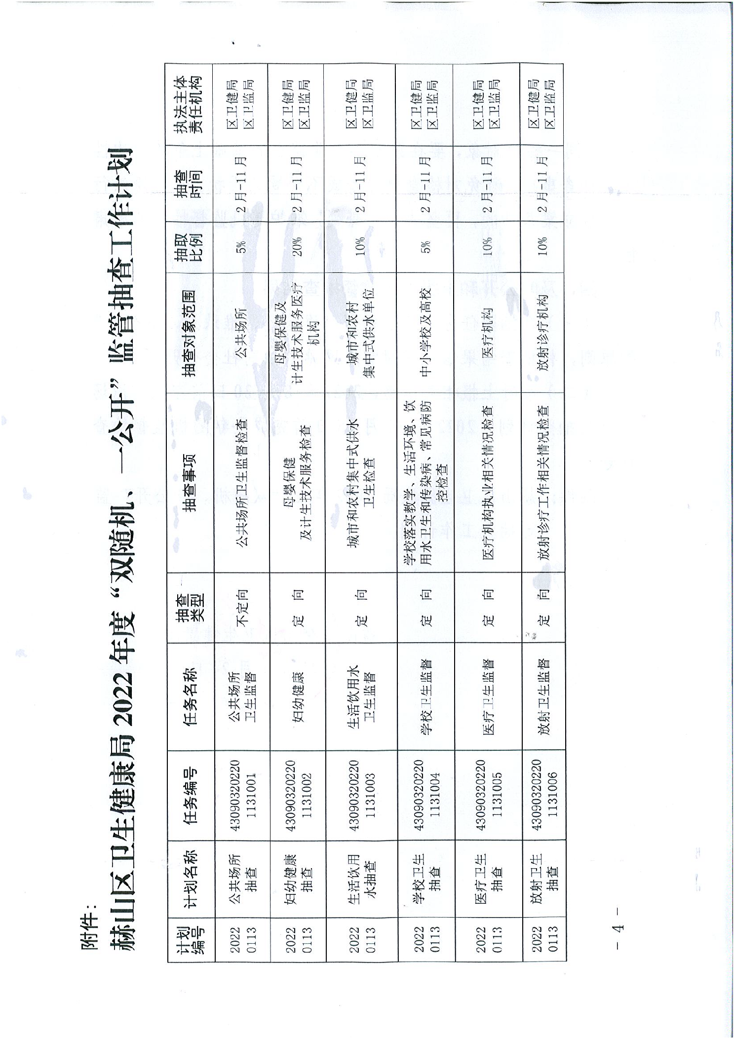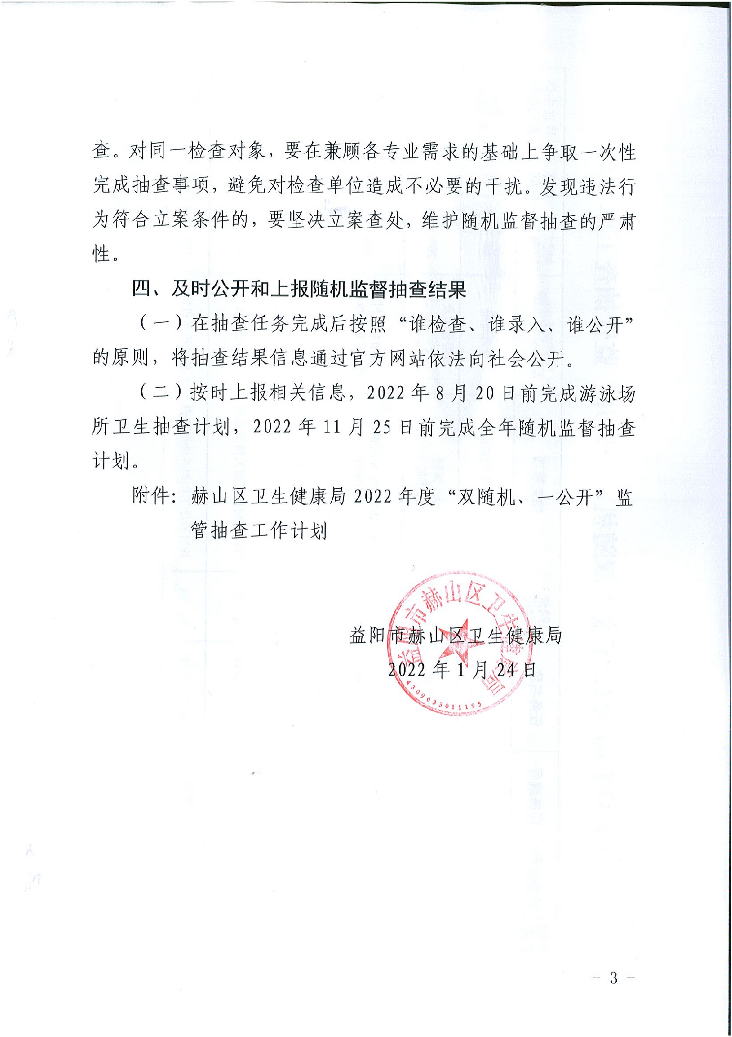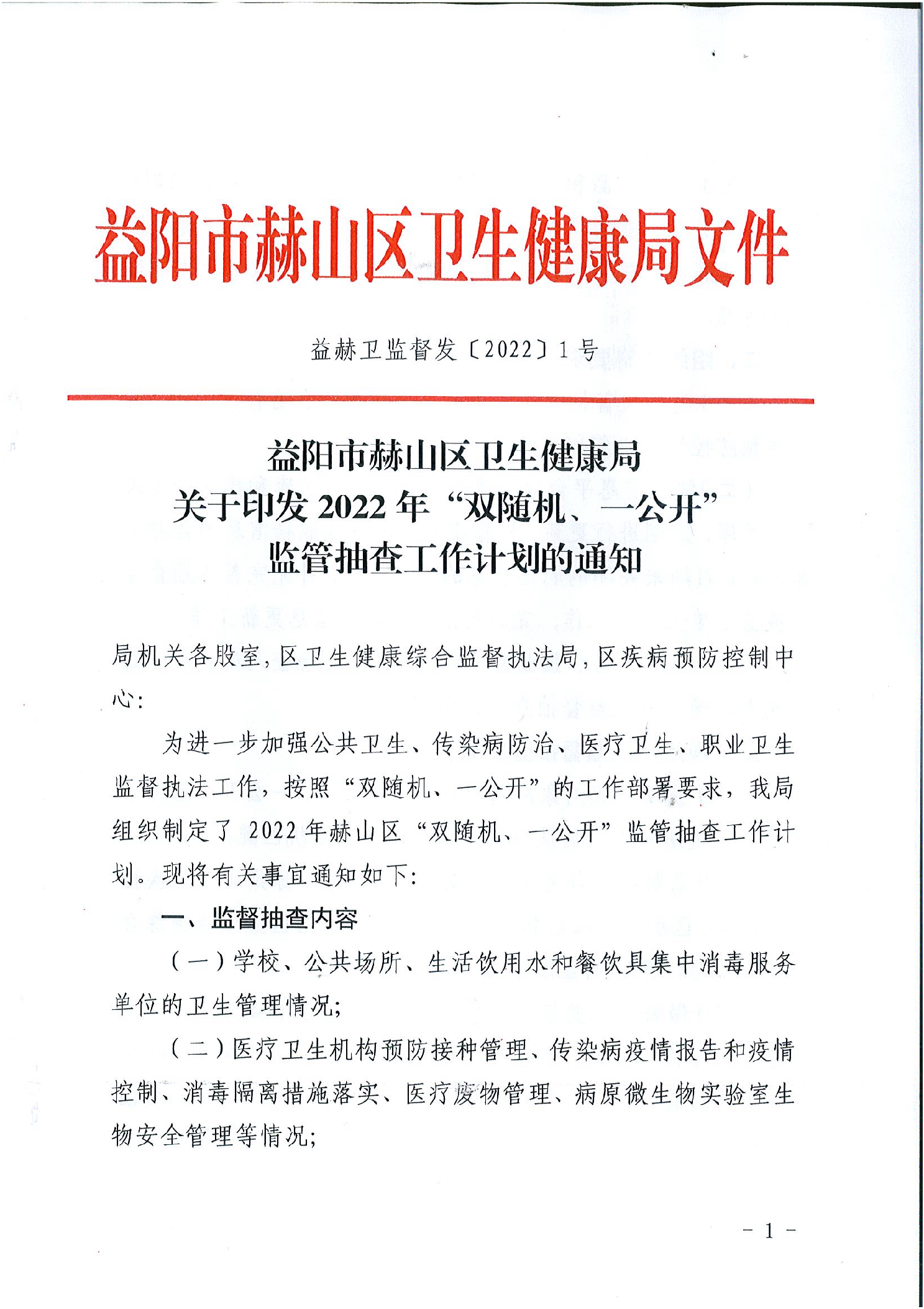 益阳市赫山区卫生健康局关于印发 2022年“双随机、一公开”监管抽查工作计划的通知