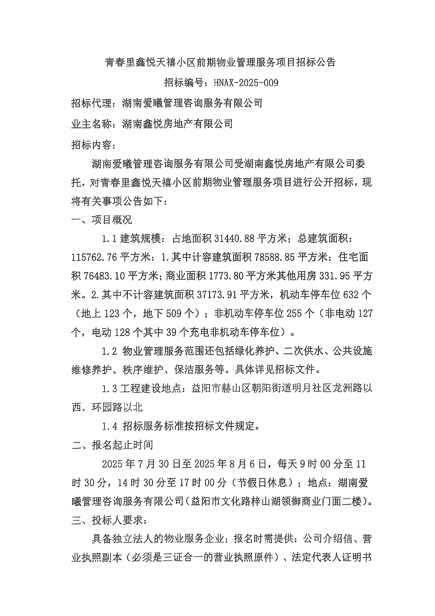 青春里鑫悦天禧小区前期物业管理服务项目招标公告