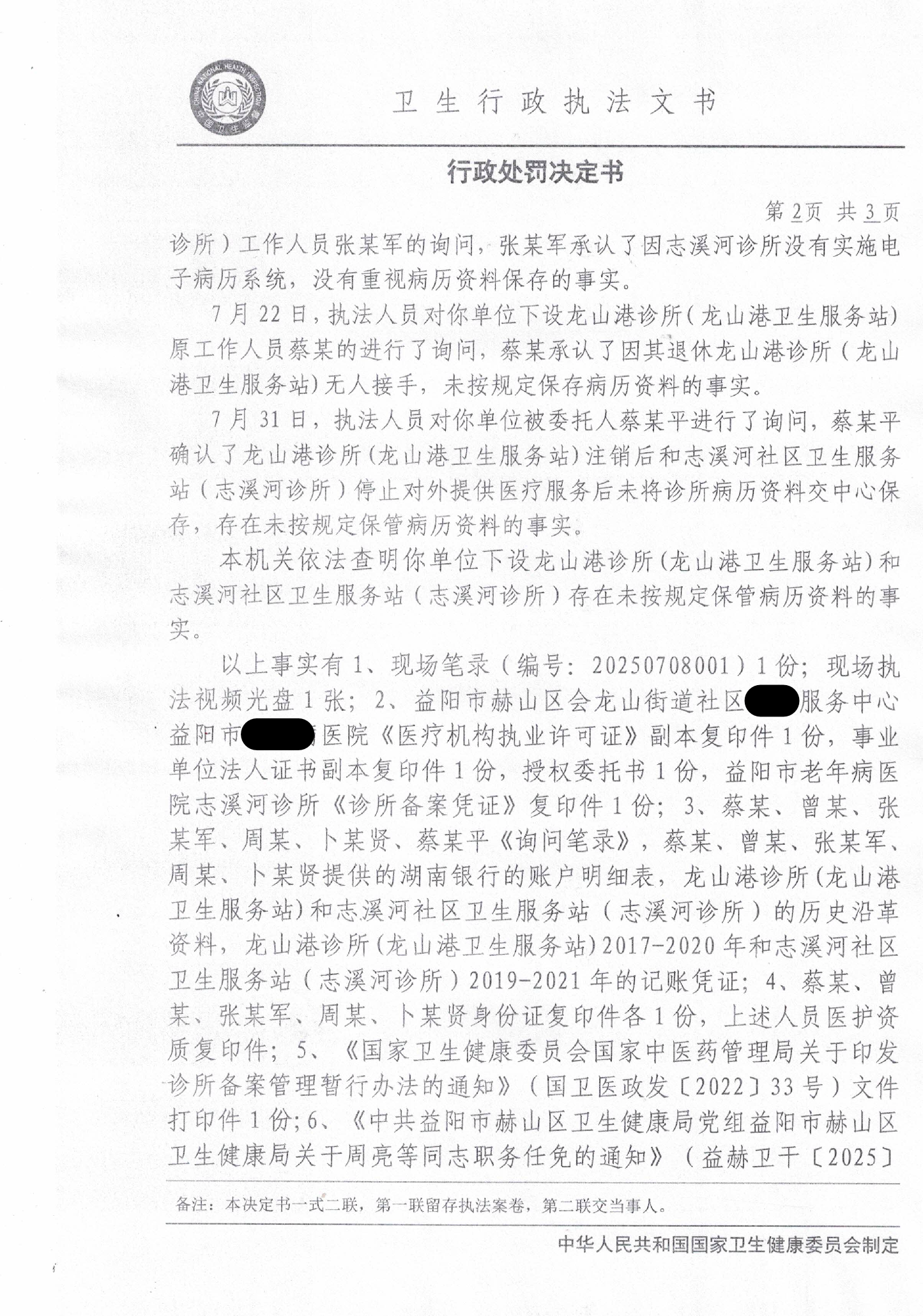 行政处罚决定书 益赫卫医罚〔2025〕004号
