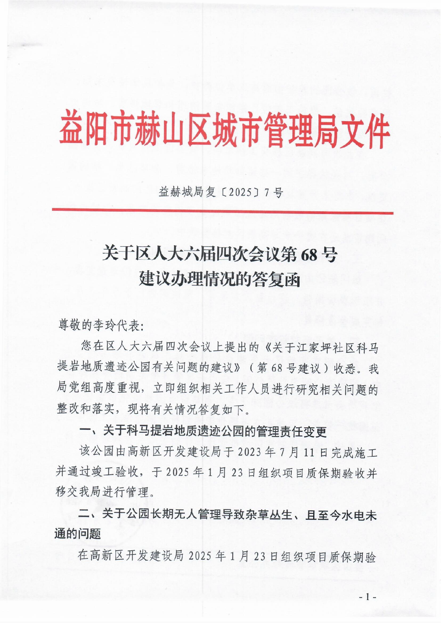 关于区人大六届四次会议第68号建议办理情况的答复函