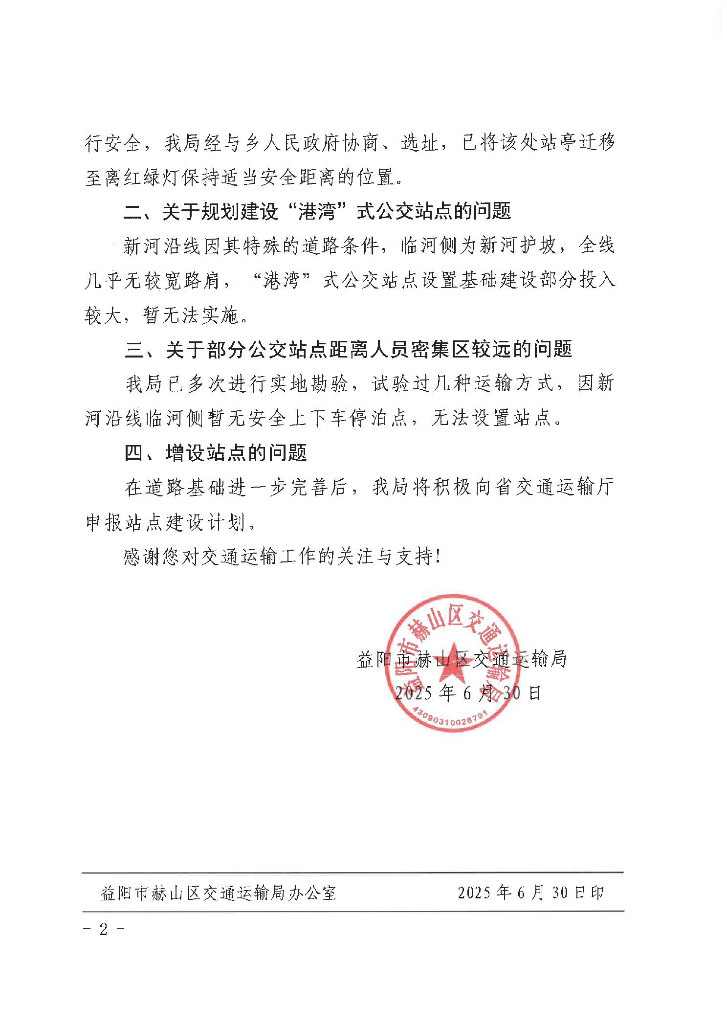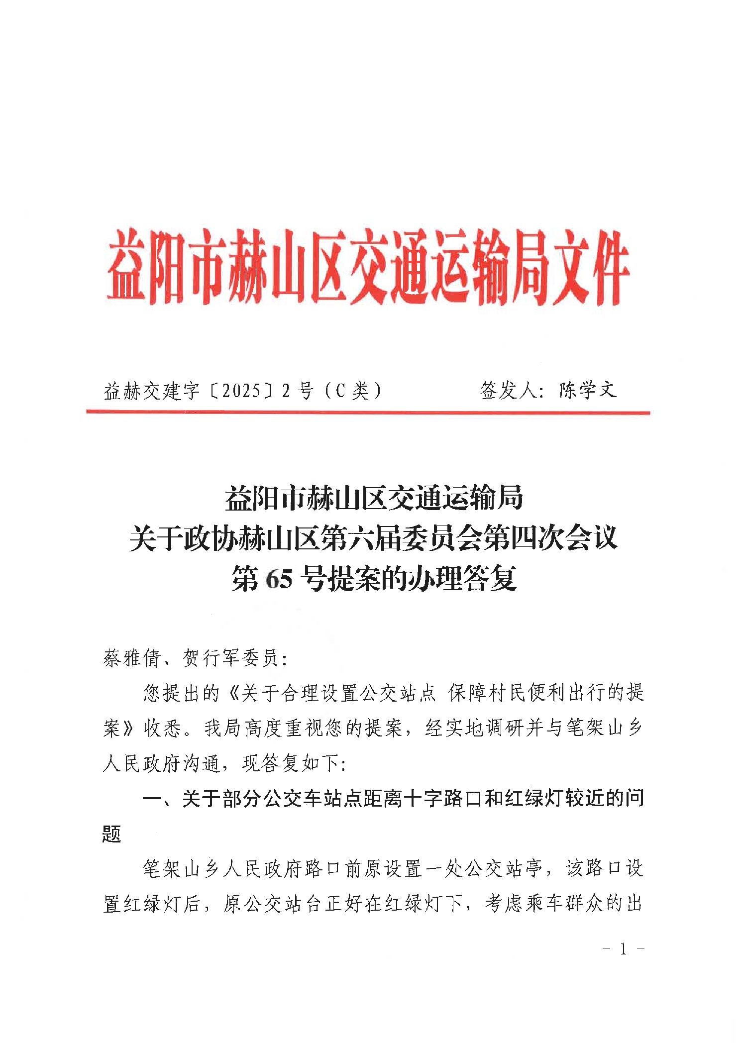 益阳市赫山区交通运输局关于政协赫山区第六届第四次会议第65号提案的办理答复(2025)