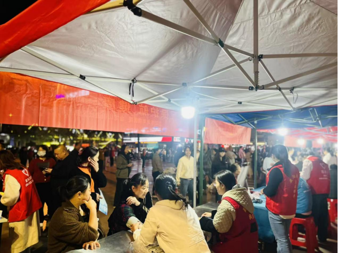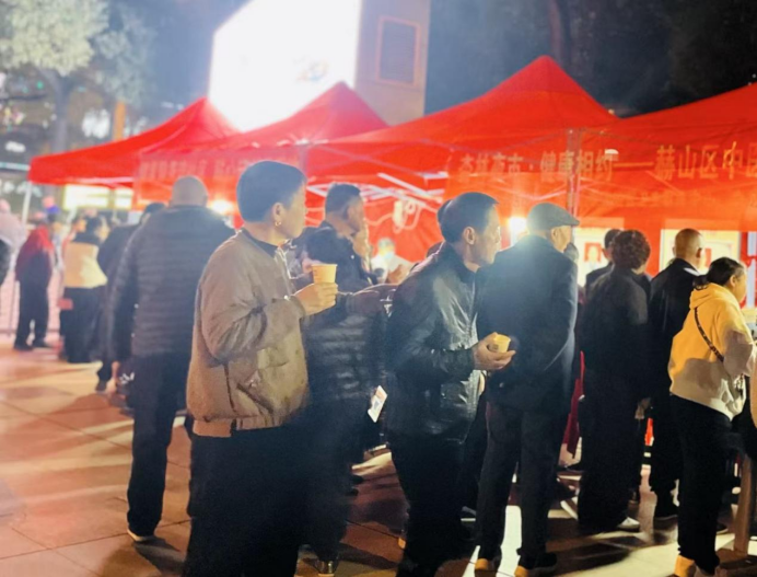 华灯初上,秀峰公园西门广场人声鼎沸。11月28日晚,由赫山区卫生健康局主办、赫山区中医医院承办、金银山街道社区卫生服务中心、会龙山街道社区卫生服务中心协办的“杏林夜市·健康相约”中医药文化夜市服务活动在此火热开启。不同于传统健康活动的严肃氛围,这场夜市以“传统中医药+多元群体+群众互动”的全新模式,让不同年龄、不同身份的市民在轻松愉悦的氛围中邂逅中医智慧,更有热爱传统文化的年轻群体、秀峰公园广场舞团队的倾情加入,为这场健康盛宴注入了别样活力。