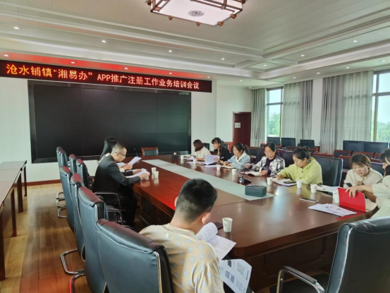 5月8日,沧水铺镇召开“湘易办”APP推广注册工作业务培训会议。镇党委委员、组织委员祝明、镇党群和政务服务中心全体成员及各村(社区)便民服务员参会。
