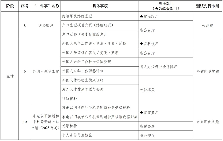 湖南省“高效办成一件事”2025年度第一批重点事项推进安排