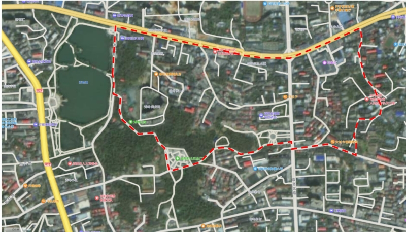 南至虎形山巷子—秀峰公园东门—康复北路—环保路;