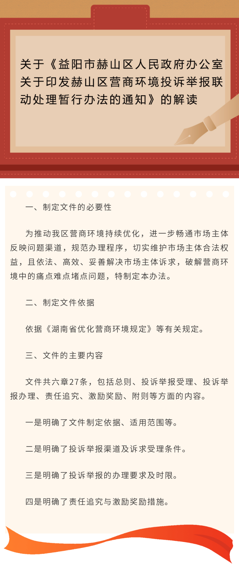 关于《益阳市赫山区人民政府办公室关于印发赫山区营商环境投诉举报联动处理暂行办法的通知》的解读(附音频解读)