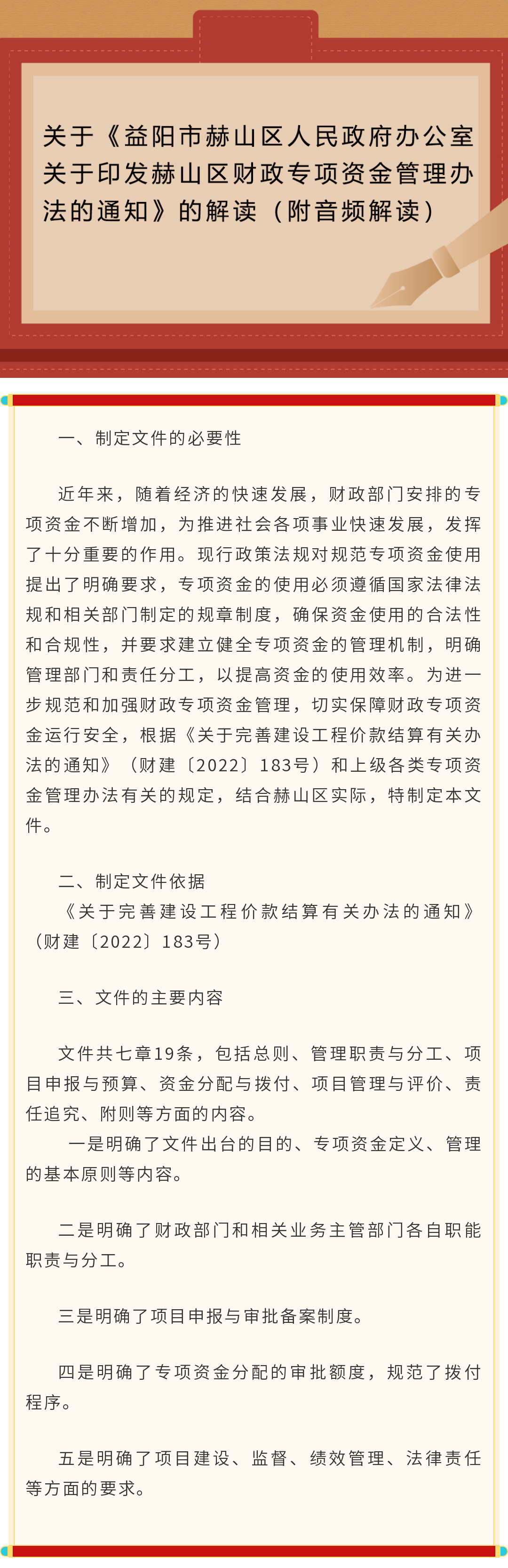 关于《益阳市赫山区人民政府办公室关于印发赫山区财政专项资金管理办法的通知》的解读(附音频解读)