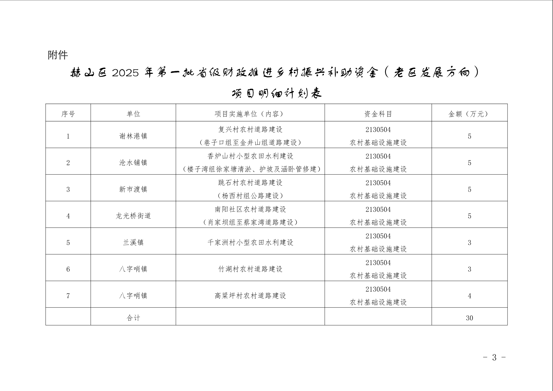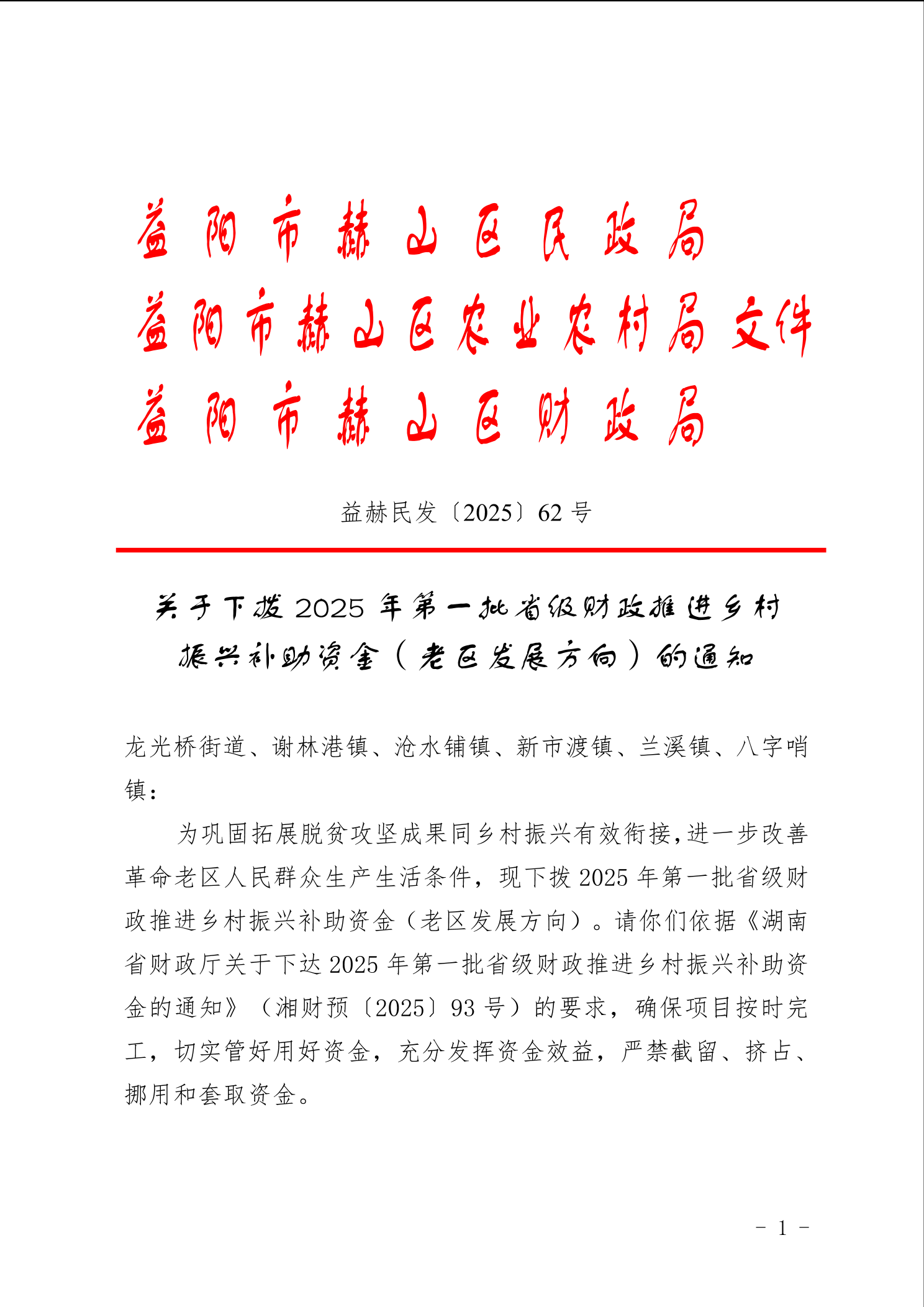 关于下拨2025年第一批省级财政推进乡村振兴补助资金(老区发展方向)的通知