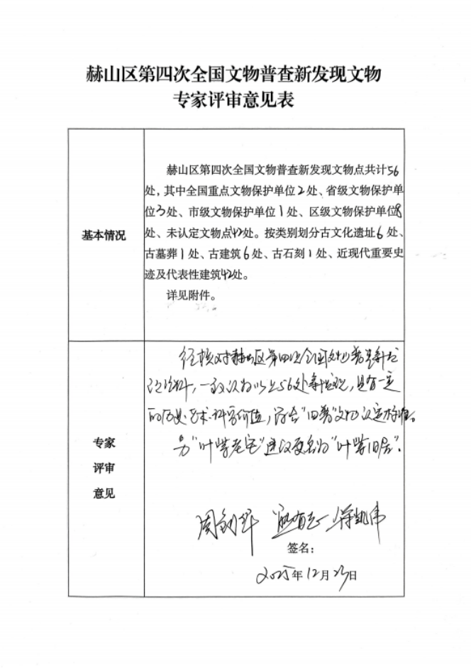 附件:1.赫山区第四次全国文物普查新发现文物专家评审意见表