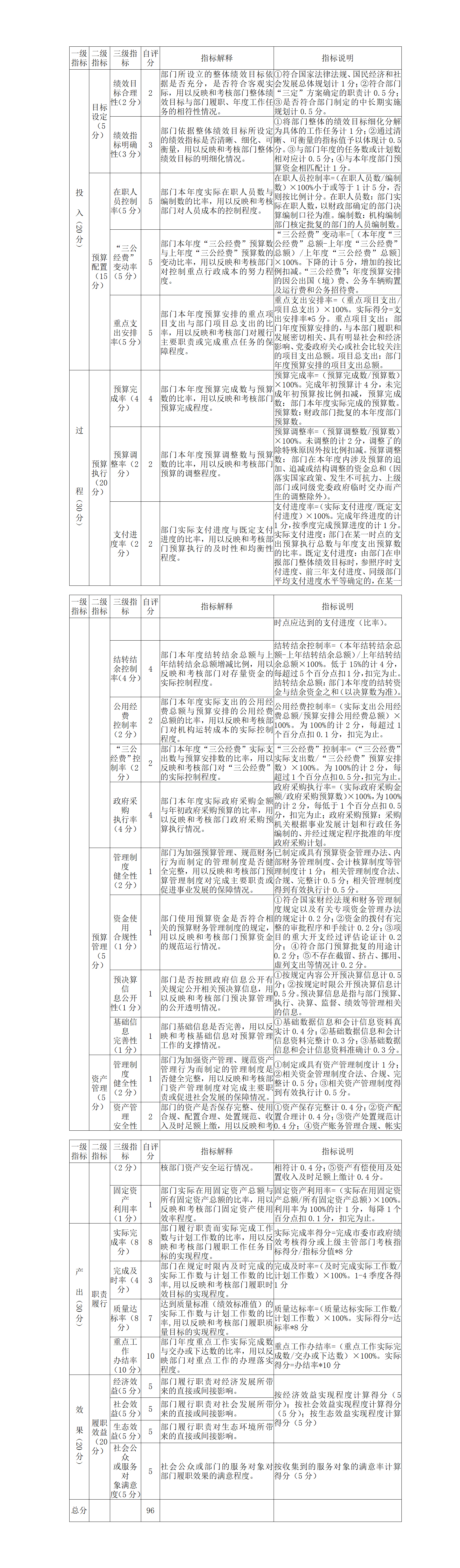 赫山区接待办2020年部门整体支出绩效自评指标计分表