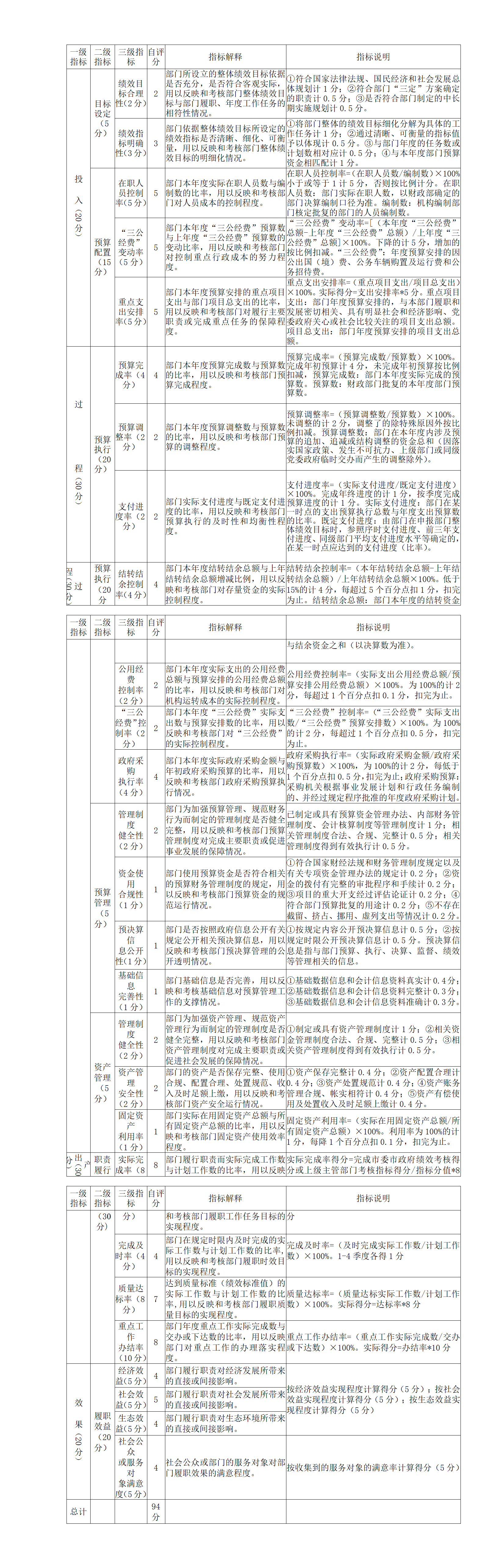 根据《2020年部门整体支出绩效自评指标计分表》评分,得分94分(详见附表),财政支出绩效自评结果为优。