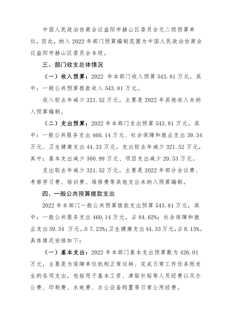 2022年中国人民政治协商会议益阳市赫山区委员会部门预算公开