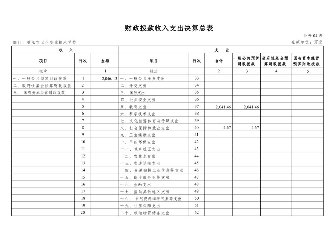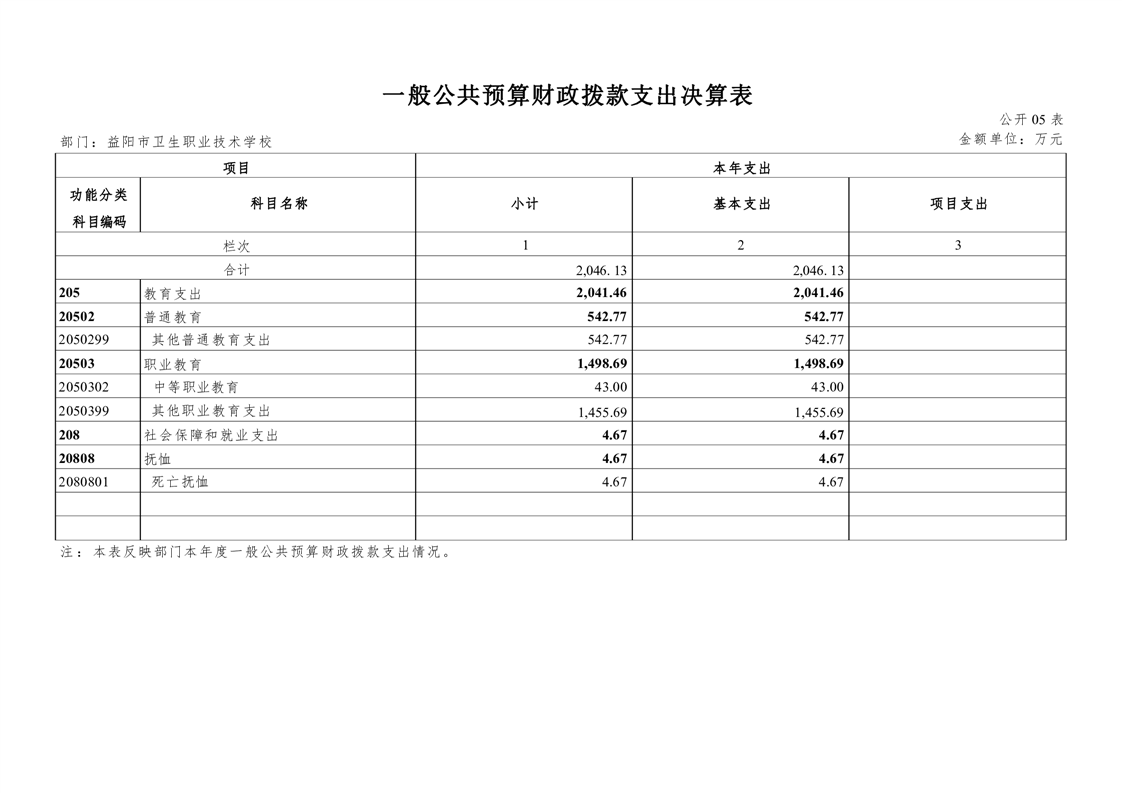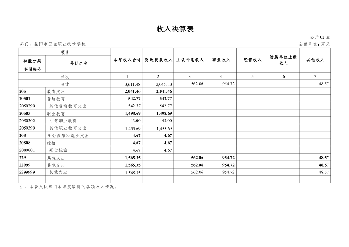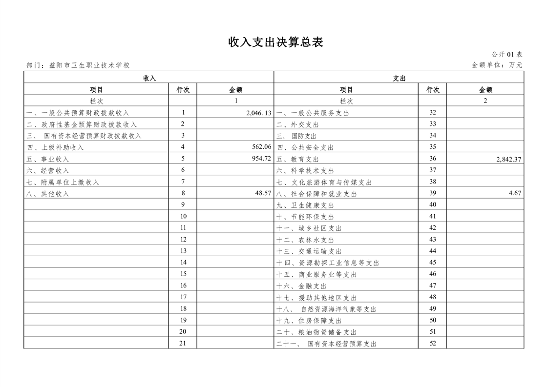 益阳市赫山区卫生职业技术学校2021年度部门决算公开