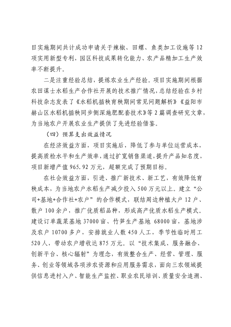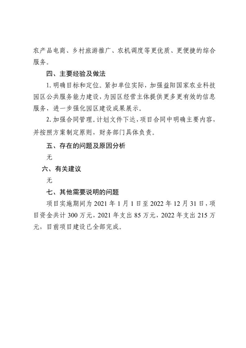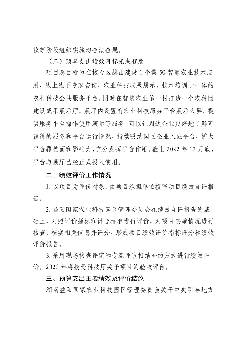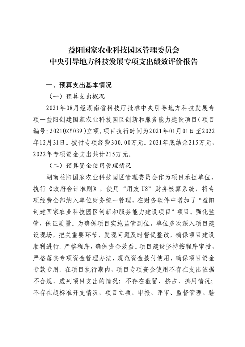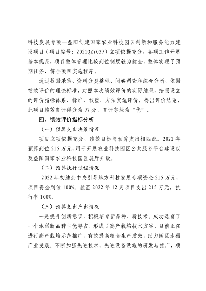 益阳国家农业科技园区管理委员会2022项目支出绩效评价报告