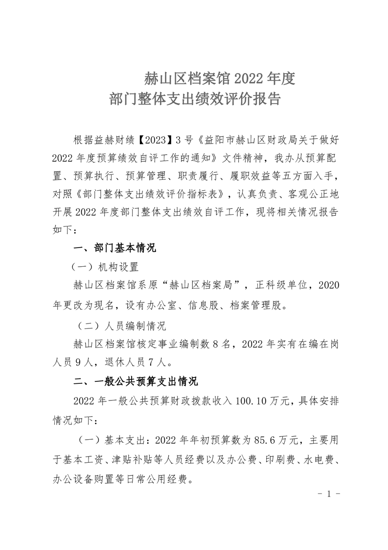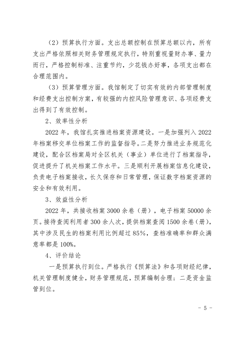 2022年档案馆部门整体支出绩效评价报告