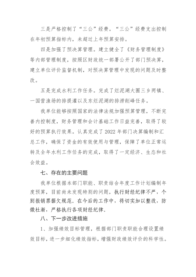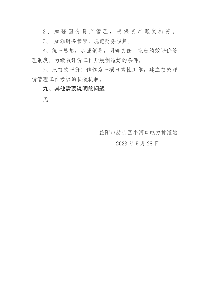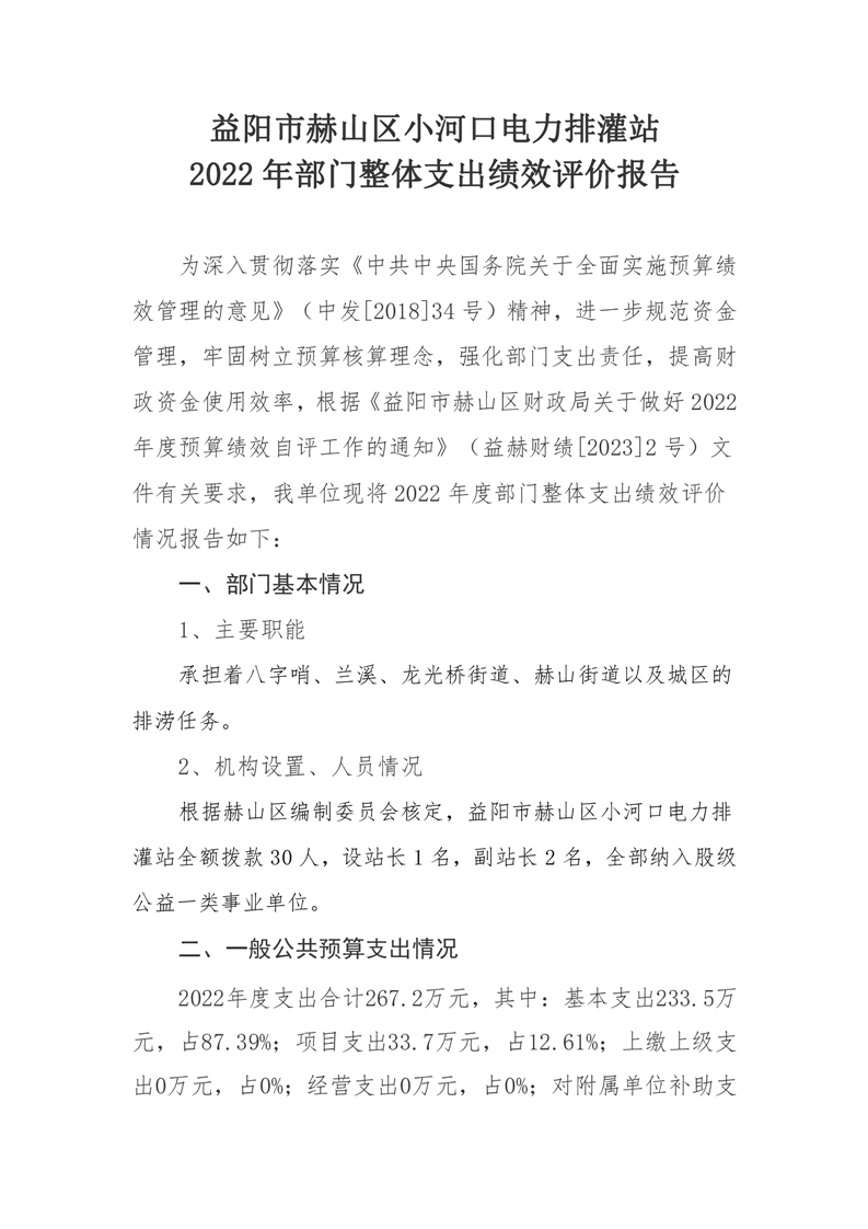 益阳市赫山区小河口电力排灌站2022年部门整体支出绩效评价报告