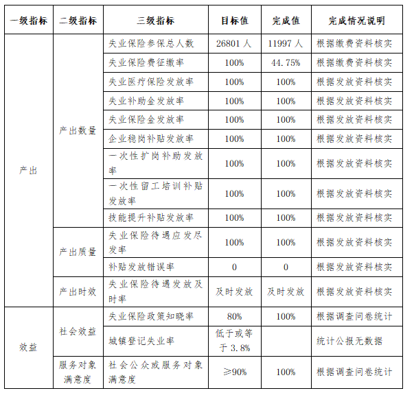 (4)失业补助金发放率。指标分值3分,得3分。2022年度发放失业保险补助724人,发放率100%,不扣分。